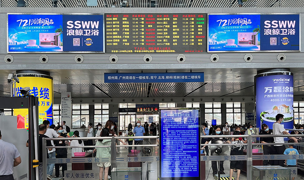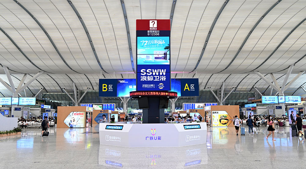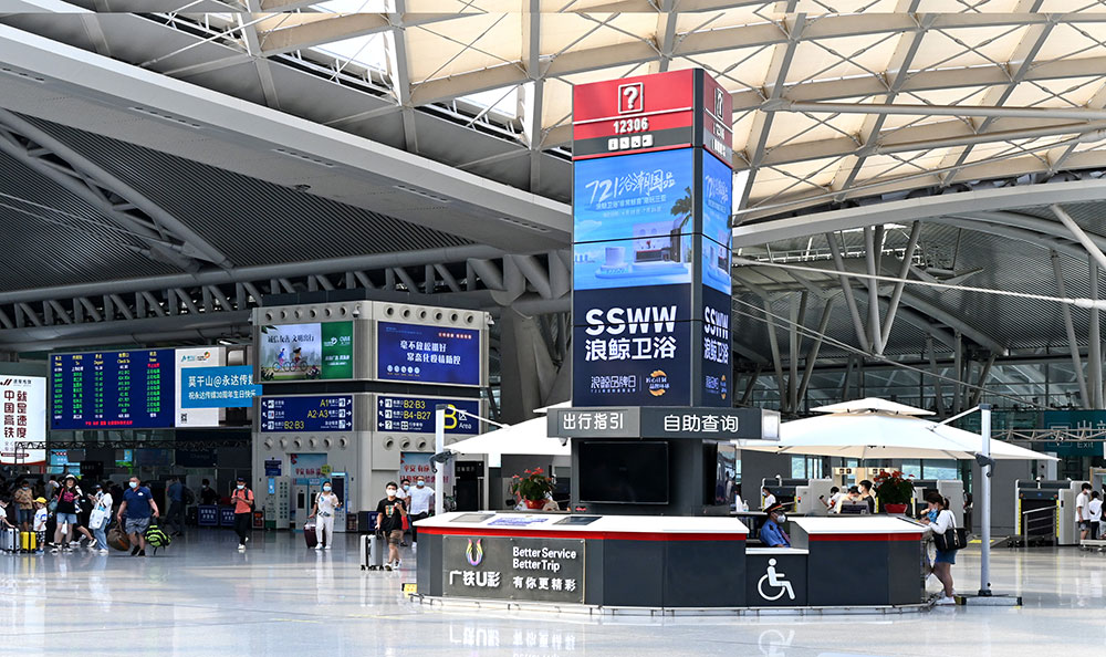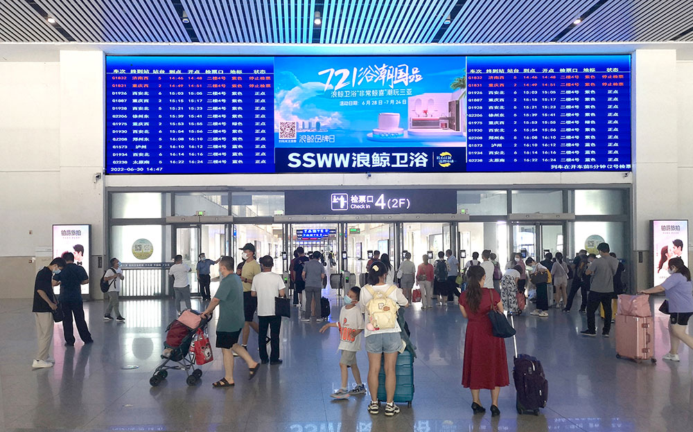 目前,浪鯨衛(wèi)浴“721浴潮國(guó)品”活動(dòng)廣告畫面已陸續(xù)登陸廣州南站、佛山西站、深圳北站、長(zhǎng)沙南站、梧州南站、宜春站、武昌站、銀川站等34個(gè)重點(diǎn)高鐵站,全線覆蓋高鐵站咨詢臺(tái)、候車大廳、站臺(tái)指引柱等高人群且流動(dòng)性強(qiáng)的區(qū)域,通過(guò)利用高鐵快捷、舒適、人流量大的特點(diǎn),開展品牌推廣活動(dòng),色彩明亮又具有沖擊力的畫面效果,成功讓群眾形成視覺記憶點(diǎn),為全國(guó)終端門店導(dǎo)流蓄客。
