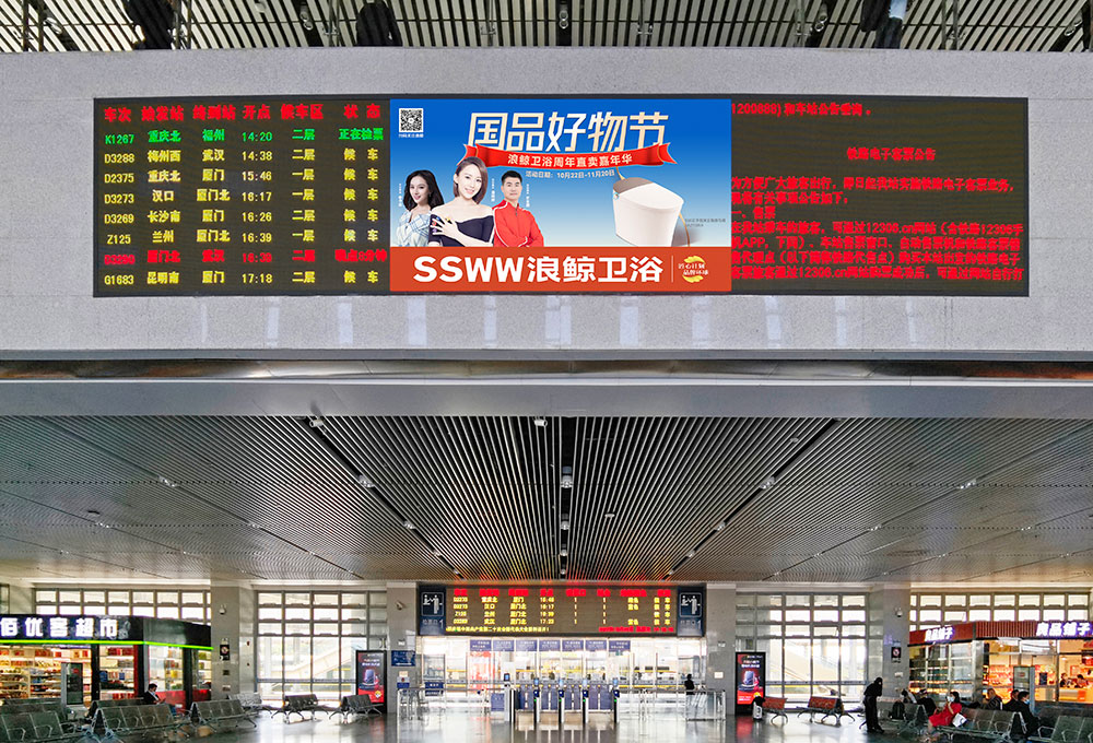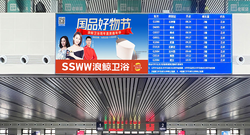 高鐵是一個(gè)非常巨大的傳播窗口,旅客來往數(shù)據(jù)龐大,高鐵廣告具有全國高覆蓋和區(qū)域強(qiáng)滲透的優(yōu)點(diǎn),能夠?qū)崿F(xiàn)規(guī)?;途珳?zhǔn)化的傳播落地效果。浪鯨衛(wèi)浴選擇全國高鐵站為傳播媒介進(jìn)行品牌形象展示,通過各地站點(diǎn)億萬次的曝光,再次加深了群眾對浪鯨品牌實(shí)力的見證,為全國性營銷活動提供了強(qiáng)有力的支持。