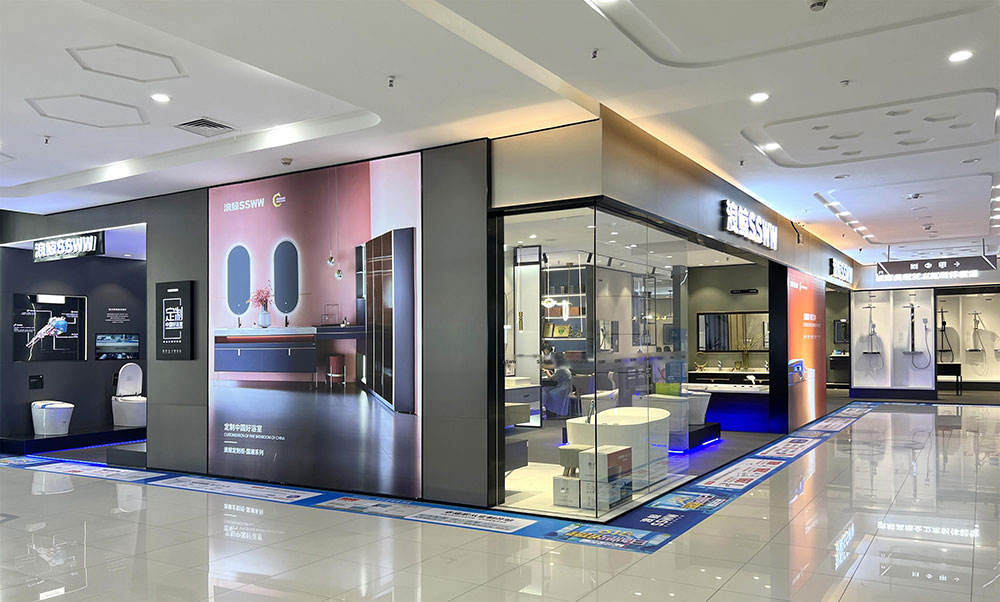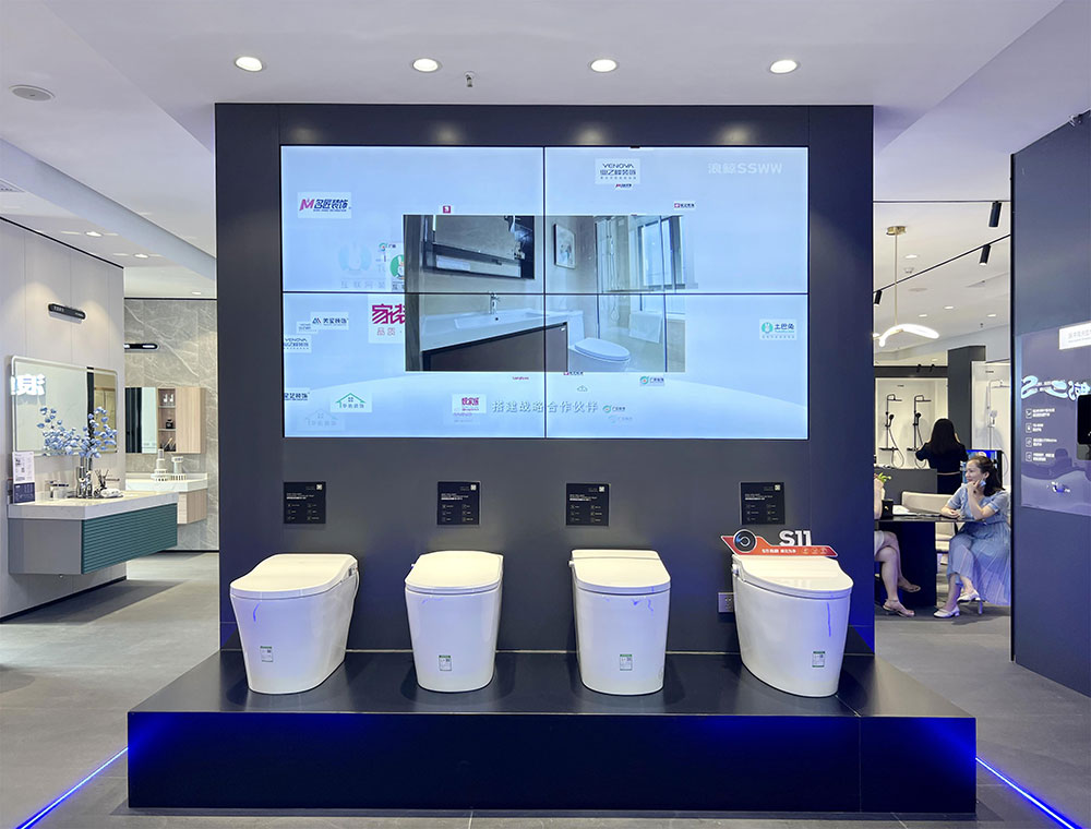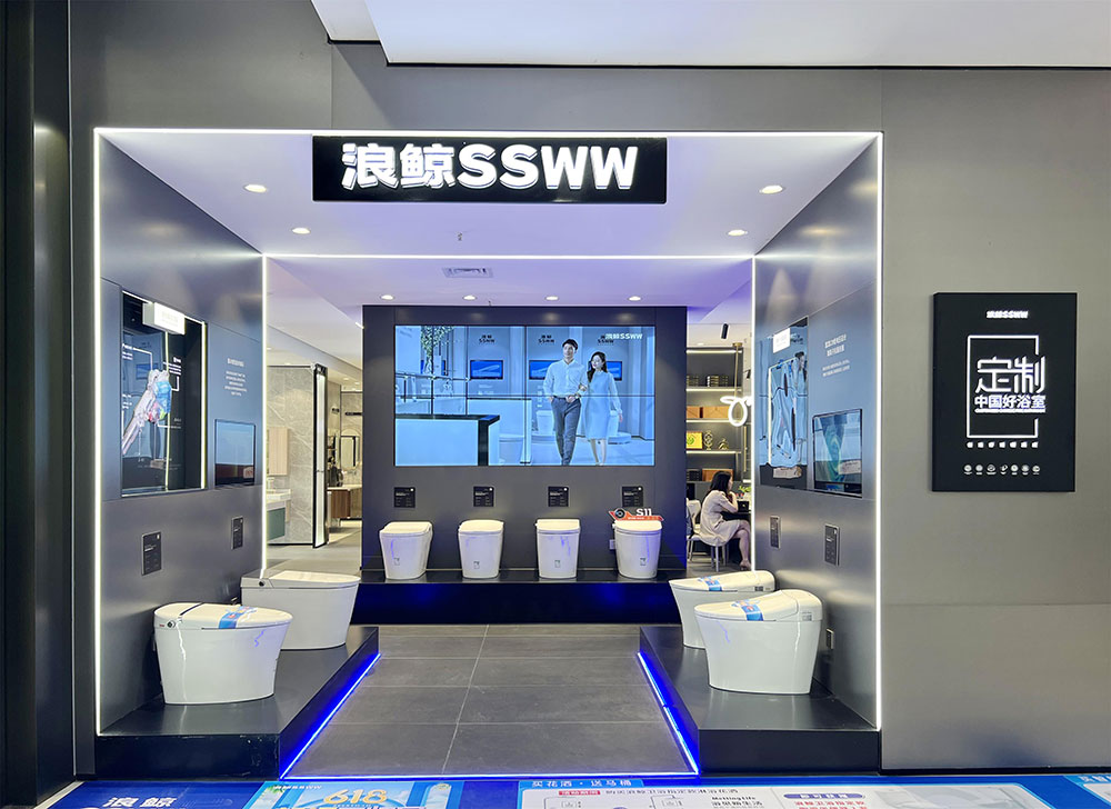 浪鯨衛(wèi)浴武漢歐亞達專賣店全新升級終端店面形象,注重智能衛(wèi)浴體驗感,創(chuàng)造藝術(shù)與生活相融的空間場景。