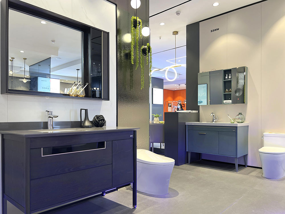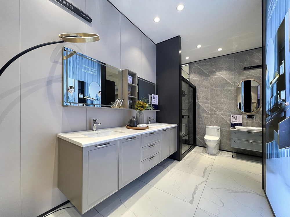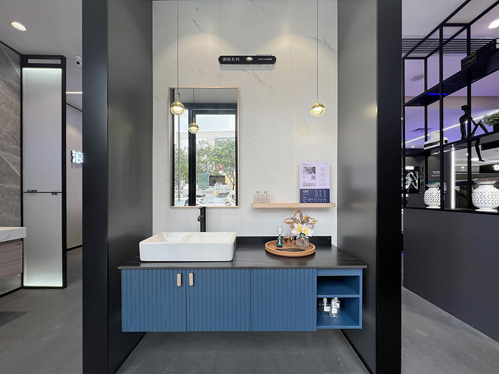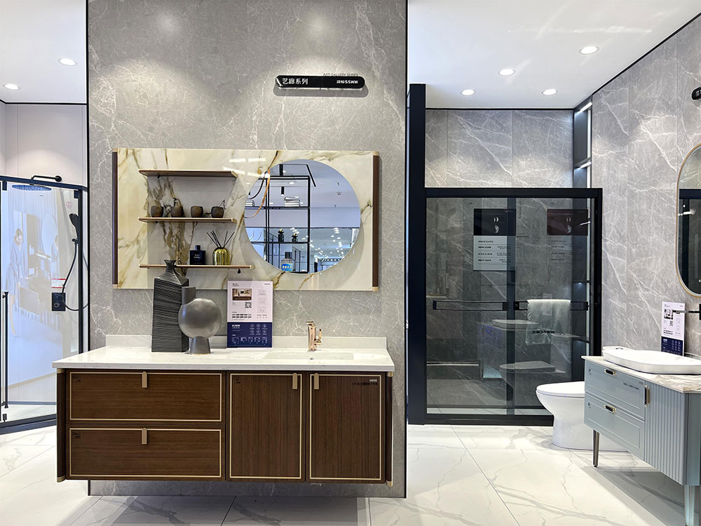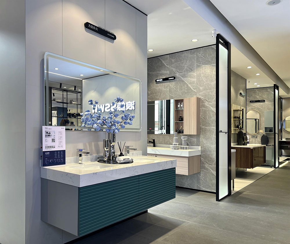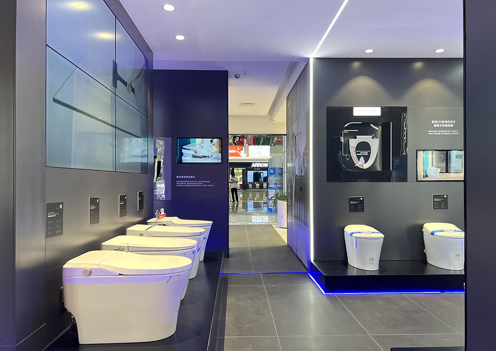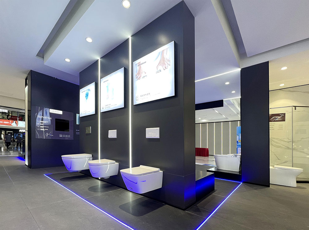 門店整體強調(diào)以細節(jié)突顯產(chǎn)品質(zhì)感,對產(chǎn)品的陳列既兼顧了衛(wèi)浴產(chǎn)品的美觀性,也將功能性一一展現(xiàn)。店內(nèi)功能分區(qū)明確,各品類款式新穎,尺寸可選,從智能單品,到定制浴室柜產(chǎn)品,一應(yīng)俱全。