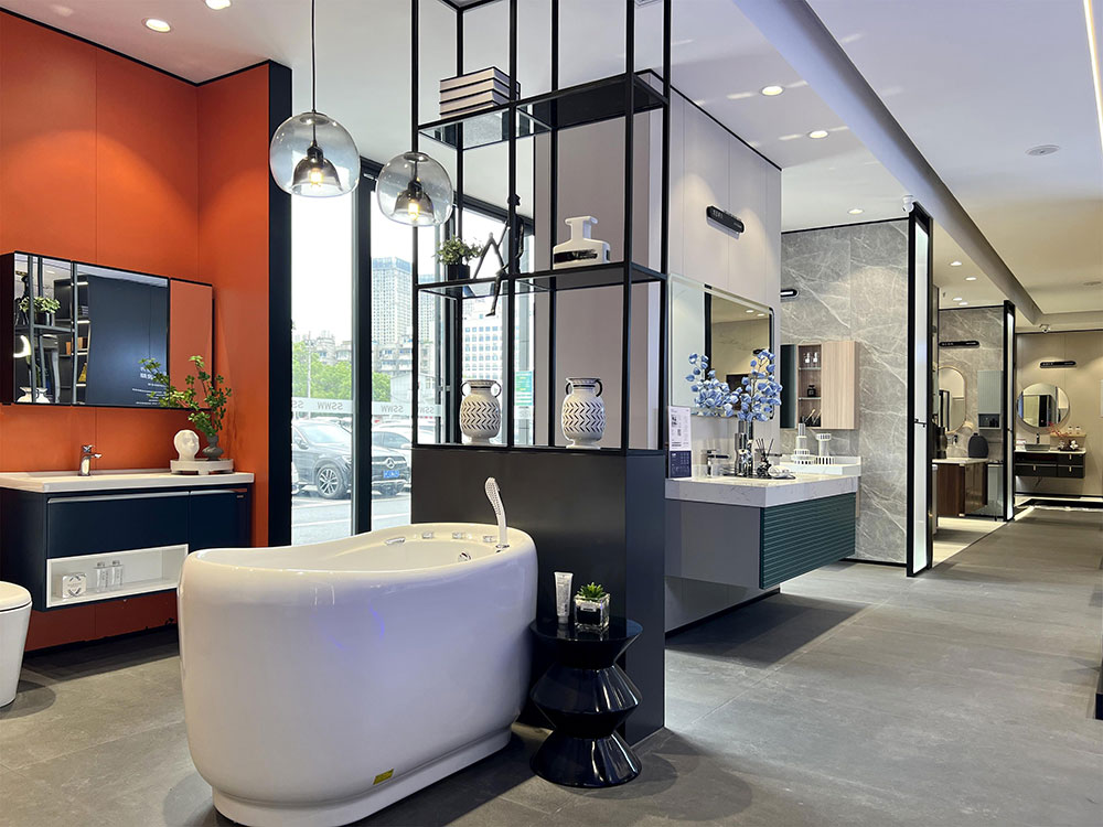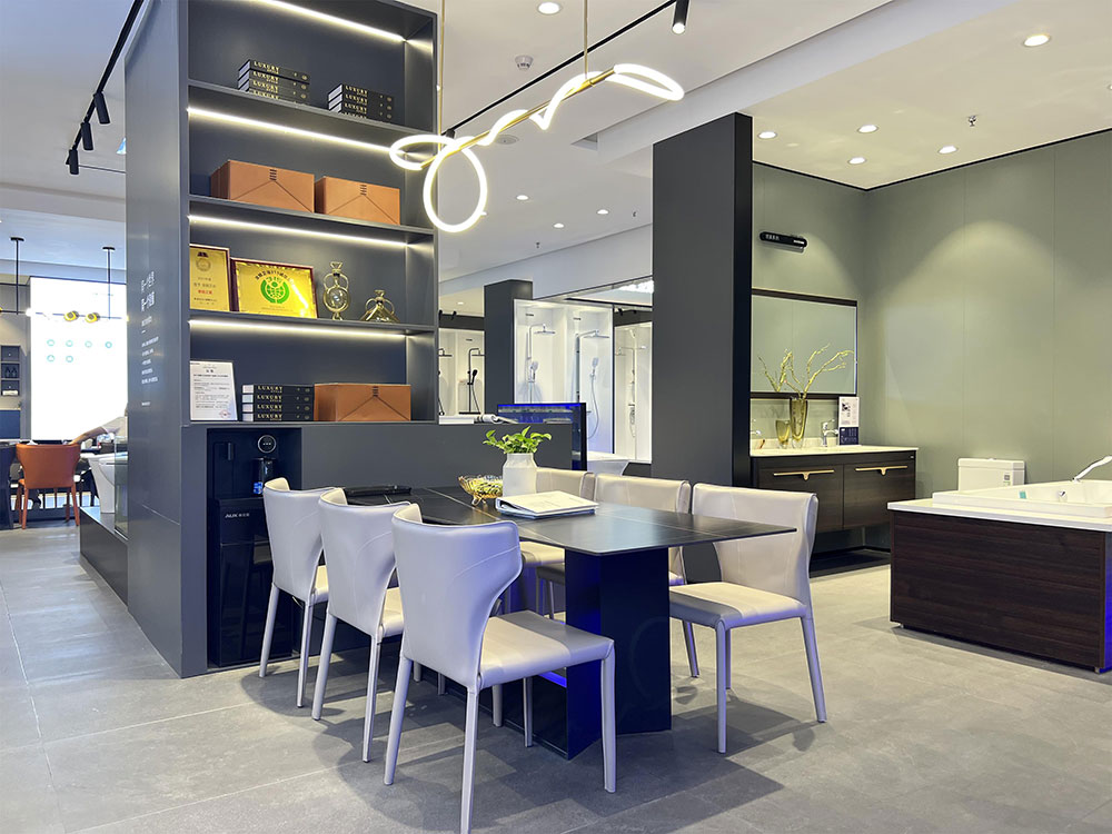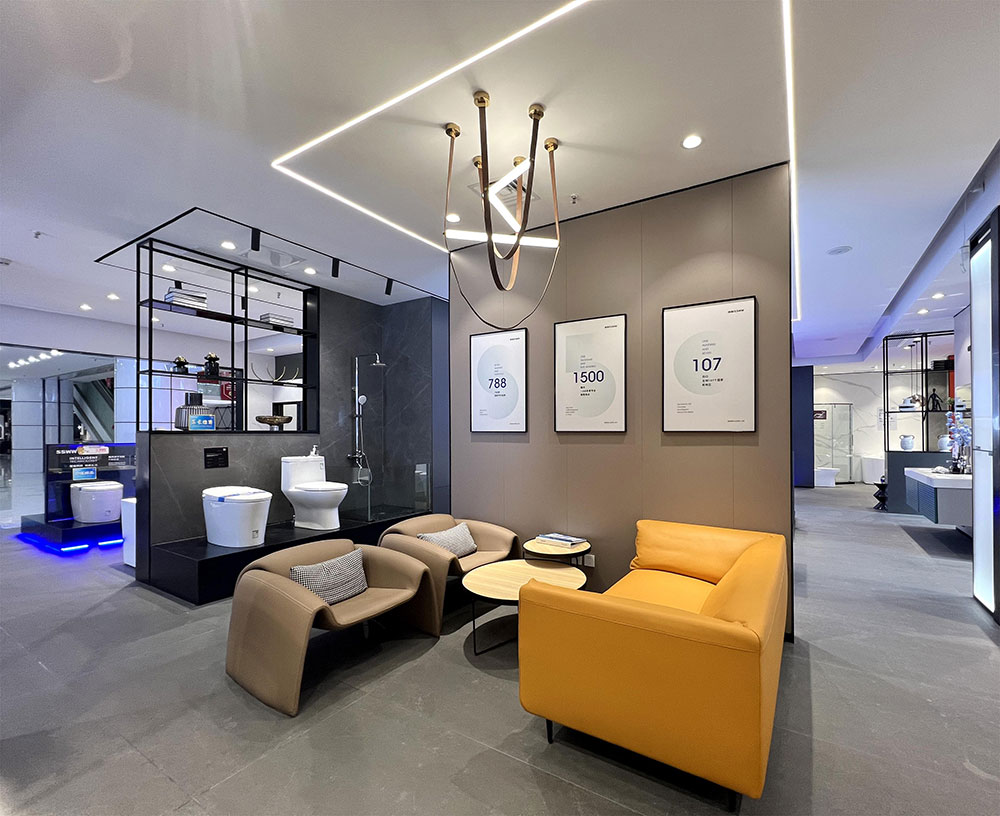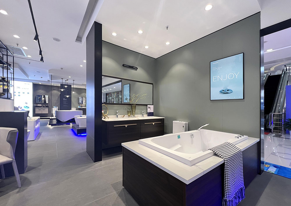 店面整體時尚簡約的格調(diào),讓人眼前一亮。通過現(xiàn)代高級配色,與臻選的衛(wèi)浴產(chǎn)品碰撞出與眾不同的空間氣質(zhì),輕奢雅致,簡約個性,讓每一個空間富有時尚感和溫馨感,帶來與眾不同的視覺感官體驗。