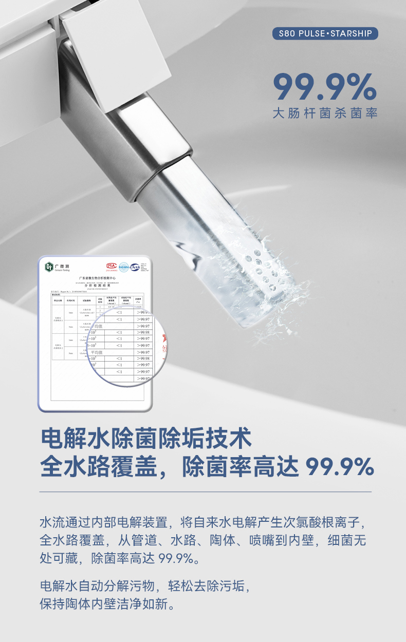浪鯨衛(wèi)浴秉持“綠色健康”企業(yè)生產理念,于產品抗菌材料的研發(fā)和健康技術創(chuàng)新上已取得不錯成果。智能產品中,應用電解水除菌除垢技術,通過電解水自動分解污物,除菌率高達99.9%,超納米貴金屬抗菌觸媒,使抗菌率能達到99.9%,時刻保持馬桶內壁的潔凈如新。同時,銀離子抗菌也是一項健康技術,有SIAA認證,能做到有效抑菌,減少細菌的滋生。五金產品選取低鉛銅的健康材質,含鉛量遠低于國標規(guī)定,有效保證日常用水的干凈。浪鯨在產品生產過程中也嚴格遵循環(huán)保標準,建有專業(yè)的產品檢測中心,讓每一款產品出廠前都經過嚴格的檢測工序,做到將優(yōu)質健康的產品交付給消費者。