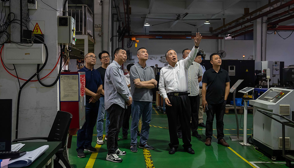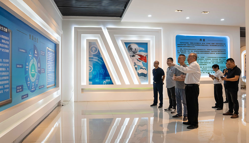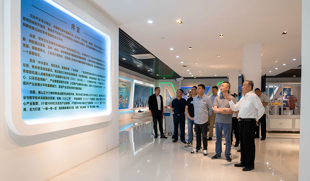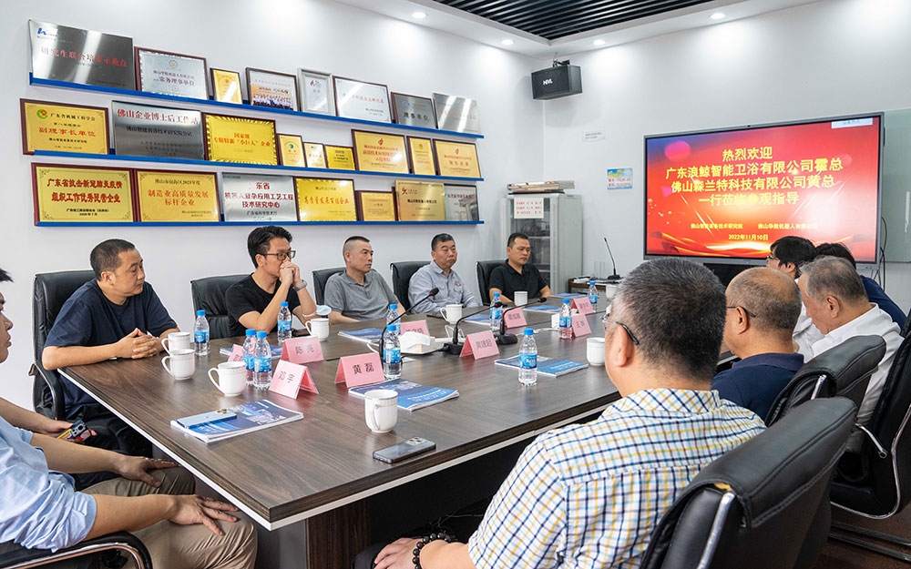 ??浪鯨衛(wèi)浴董事長(zhǎng)霍成基、佛山智能裝備技術(shù)研究院院長(zhǎng)王群、佛山華數(shù)機(jī)器人有限公司常務(wù)副總經(jīng)理?xiàng)盍?、廣東賽因迪科技股份有限公司董事長(zhǎng)黃建起等一行領(lǐng)導(dǎo)出席戰(zhàn)略合作簽署儀式,并在院長(zhǎng)王群的引領(lǐng)下,一同走訪參觀智能裝備院。