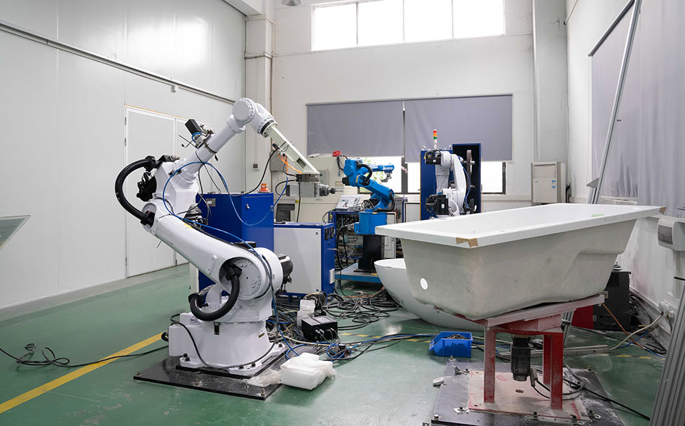 ??在走訪參觀智能裝備院過(guò)程中,可以看到車間內(nèi)機(jī)器人靈活地轉(zhuǎn)動(dòng)機(jī)械手臂,完成搬運(yùn)、碼垛、切割、拋光打磨等技術(shù)活。接下來(lái),浪鯨衛(wèi)浴將攜手智能裝備院,注入科技創(chuàng)新的智力支持,把科技成果應(yīng)用到研發(fā)生產(chǎn)中,提高量產(chǎn)批次之間穩(wěn)定性,極大降低產(chǎn)品不合格率,為市場(chǎng)提供更高品質(zhì)的衛(wèi)浴產(chǎn)品。