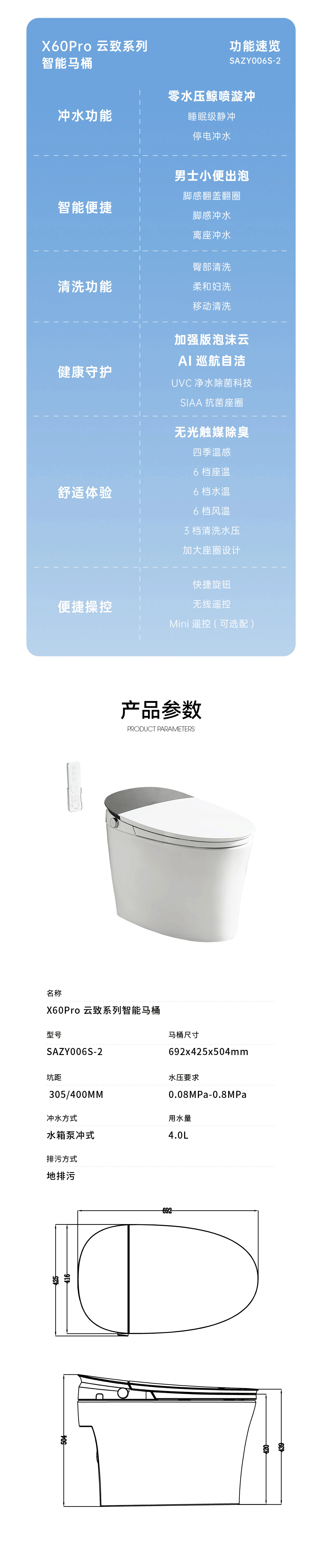尺寸:692×424×504mm 坑距:305/400mm 用水量:4.0L 防水等級:IPX4