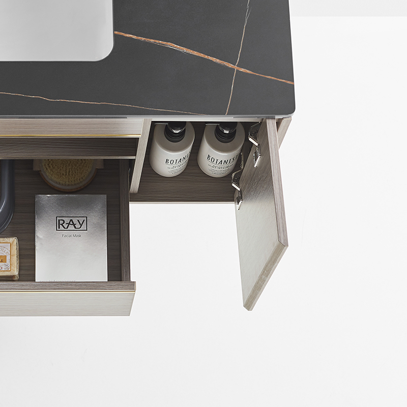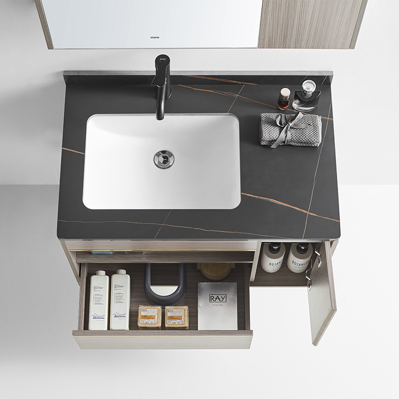 主柜含巖板臺面 : 800×500×500mm 鏡柜 : 800×120×707mm 材質 :多層實木板 顏色 :紫楊