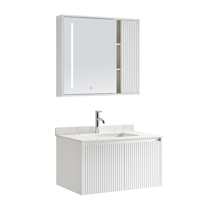 主柜含巖板臺面 : 800×500×450mm 智能鏡柜 : 800×120×707mm 材質(zhì) :多層實木板 顏色 :天方白