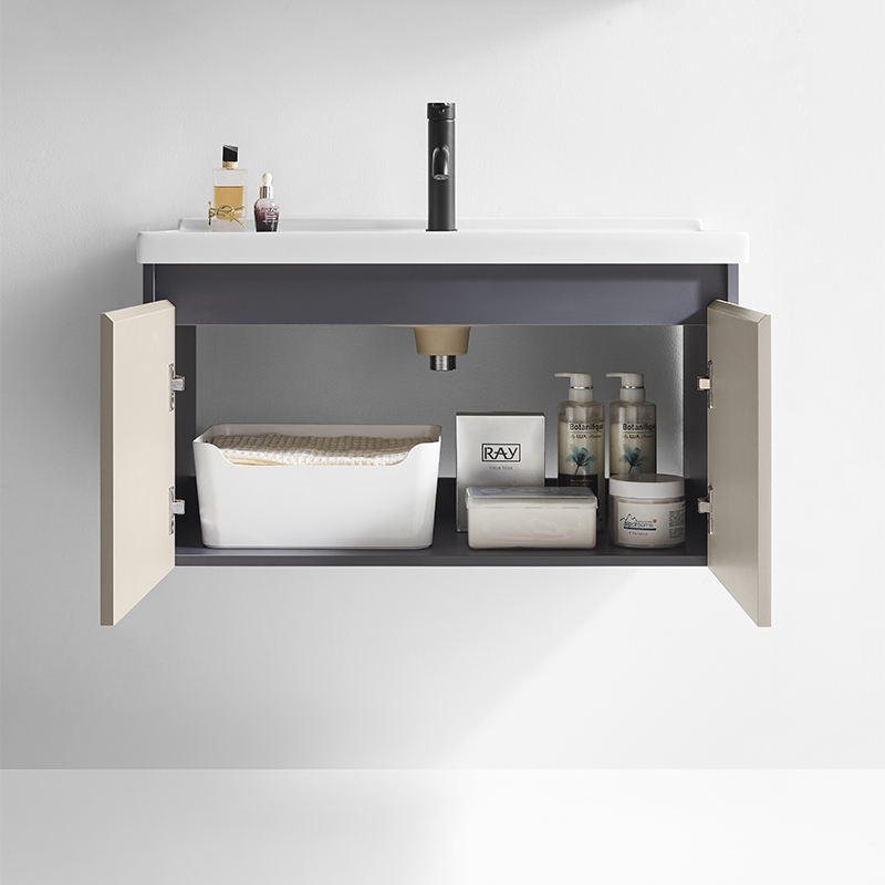 主柜含陶瓷盆 : 710×480×450mm 鏡柜 : 700×120×650mm 材質(zhì) :多層實木板 顏色 :鐵灰 + 卡其灰
