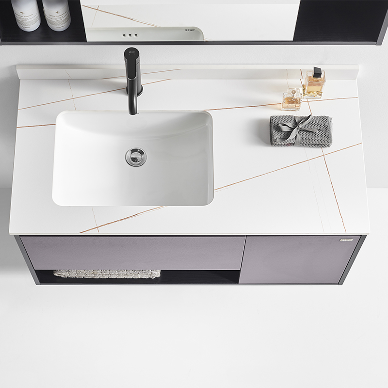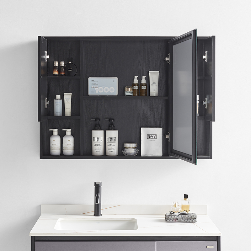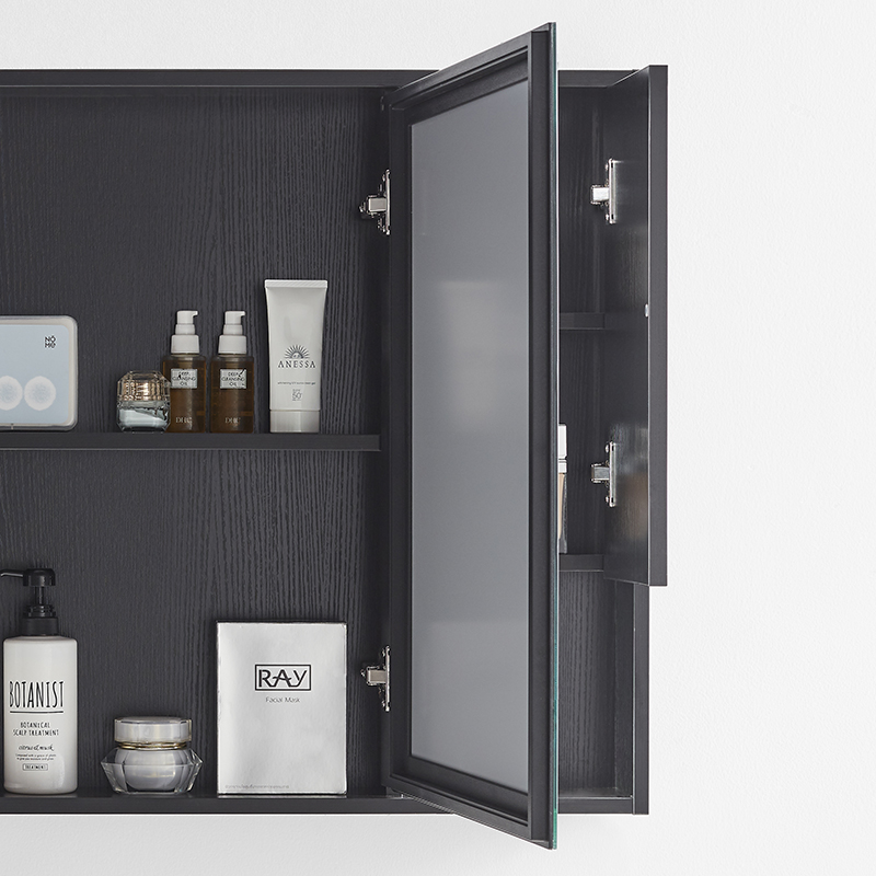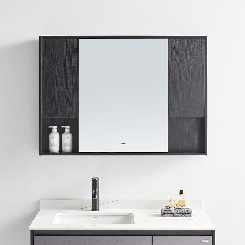 主柜含巖板臺面 : 1000×500×480mm 鏡柜 : 1000×120×707mm 材質 :多層實木板 顏色 :橄欖木皮紋 + 黑木紋