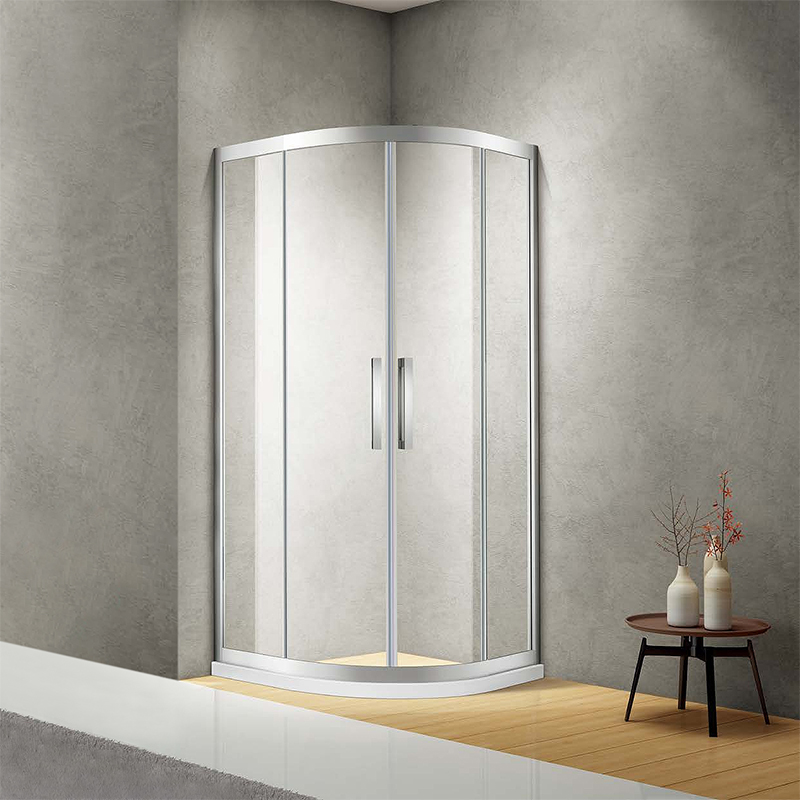 定制規(guī)格: A=800-1600mm B=800-1600mm H=1850-2200mm 玻璃厚度:6mm/8mm 玻璃圖案:光玻 顏色:光銀 材質:鋁材 定制形狀:扇形