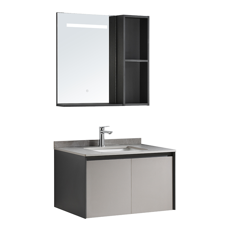 全柜 : 800X515X1870mm 主柜 : 790X510X450mm 掛鏡 : 770X130X720mm 臺(tái)面 : 阿瑪尼灰?guī)r板 A 紋 主色調(diào) : 深褐卡其 / 鐵灰色