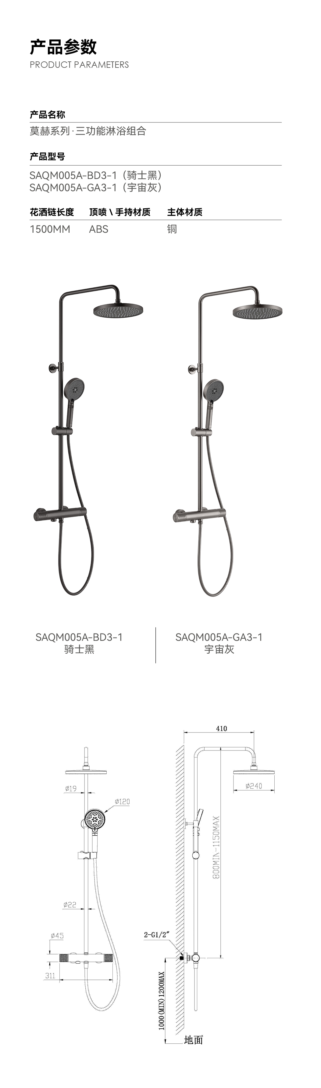 單把淋浴組合( 槍灰色 + 深灰色 )