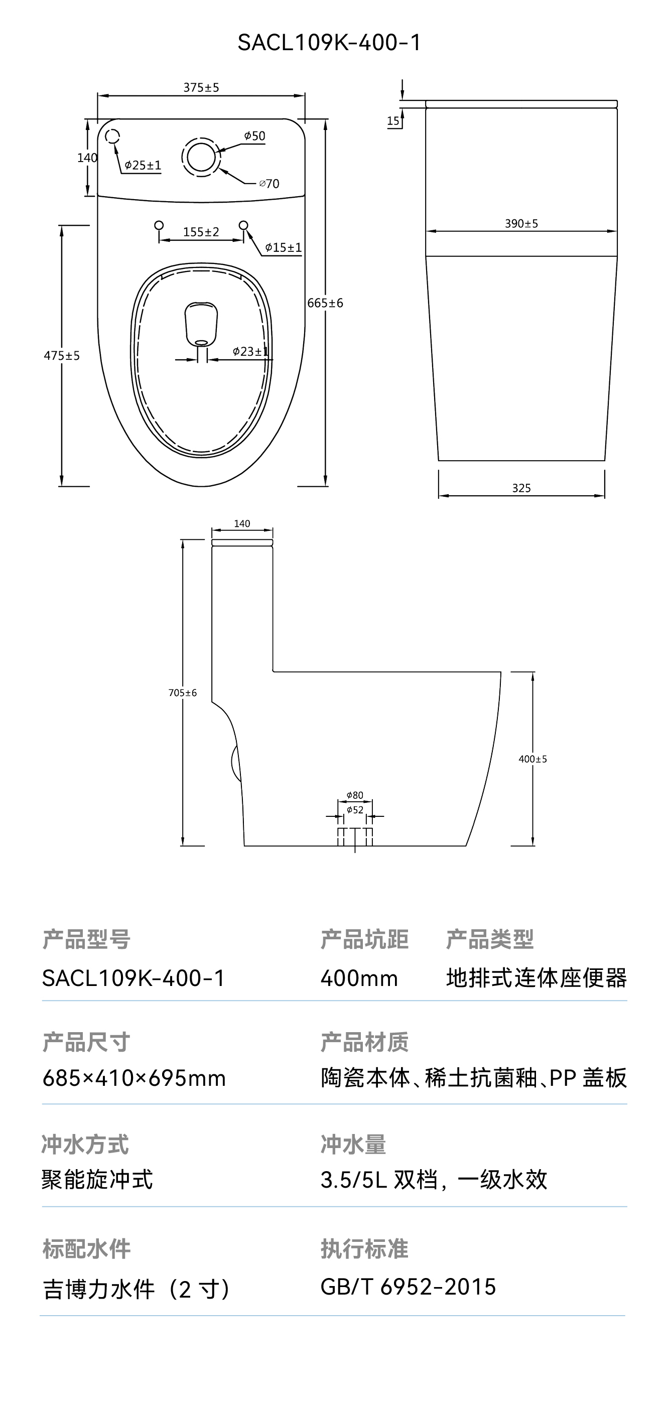 尺 寸 : 685X410X695mm 坑 距 : 300/400mm 顏 色 : 水晶白 沖水方式 : 聚能旋沖 用?水 量 : 4.0L 排污方式 : 地排污