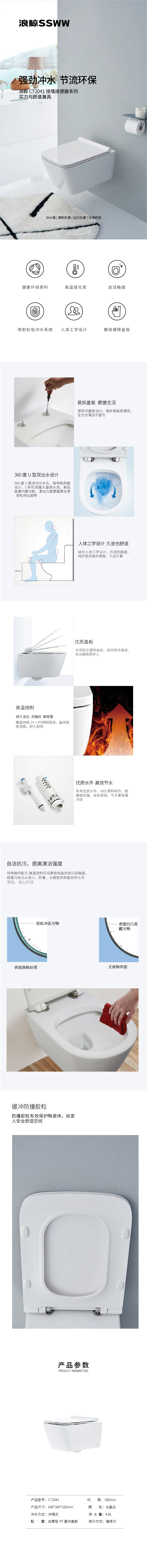 尺 寸 : 540X360X320mm 坑 距 : 180mm 顏 色 : 水晶白 沖水方式 : 沖落式 用?水?量 : 4.8L 排污方式 : 墻排污