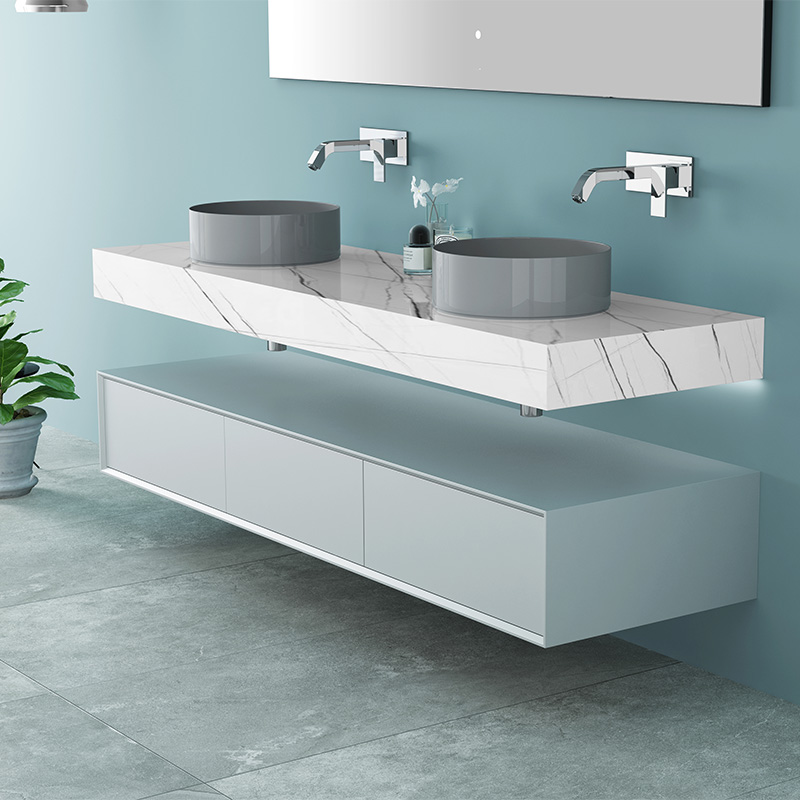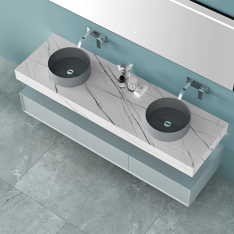 主柜:含柜體、緩沖導軌、抽屜; 掛鏡:含 LED 燈帶、開關; 臺面:含后擋水高 65mm; 門板材質:免漆 陶瓷盆、龍頭另計費用。