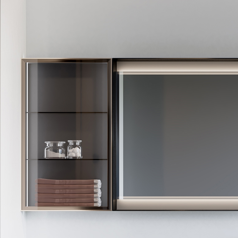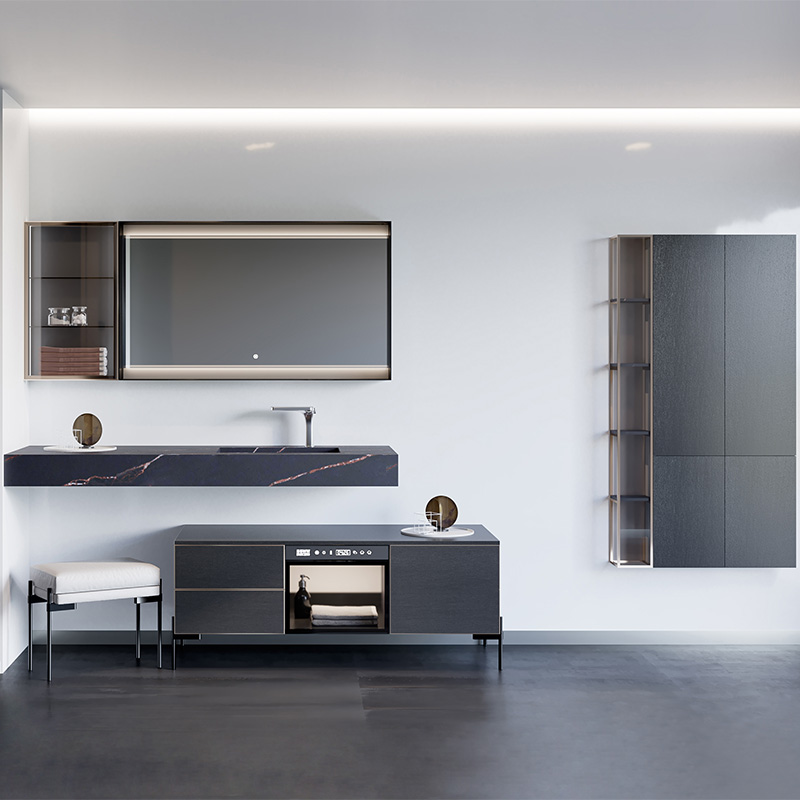 主柜 :D0019 雙抽主柜、D0101 單門護理 柜、D0010 單抽盆柜 掛柜 :D1063 單門掛柜 ( 玻璃層板帶 燈 )、D1019開放鏡柜 ( 帶燈 ) 臺面 : 巖板一體盆 , 不含擋水 面板材質(zhì) : 主柜免漆面板、掛柜鋁合金 玻璃門板 龍頭、下水另外計費。